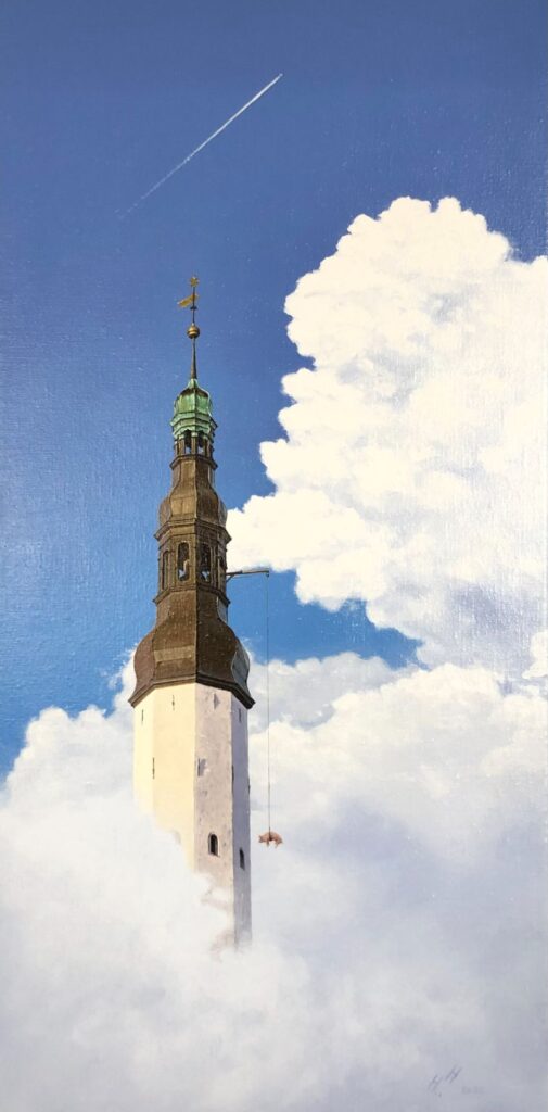 “Eile oli tornis sünnipäevapidu” – akrüülvärvid lõuendil, 90x110cm, 2024